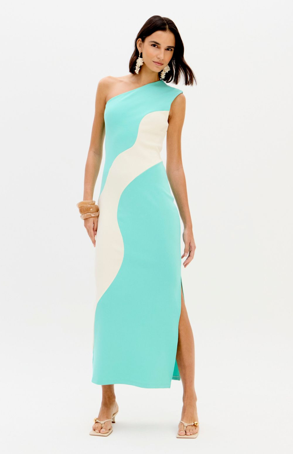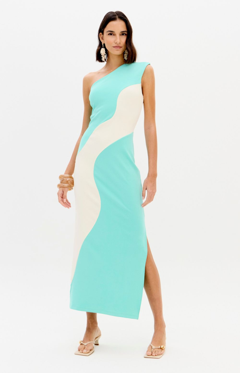 Made from a substantial knit fabric, this super midi dress features a one-shoulder design and a body-hugging fit to flatter the figure with elegance. The side slit adds lightness and movement to the look. The perfect choice to make a statement this season!