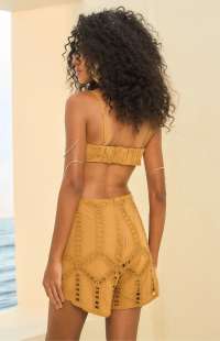 The Jumpsuit with Sheer Panel and Side Slit is a celebration of the meticulous craftsmanship of handmade items in the TROPICAL ESCAPE collection. In a mustard shade that evokes the warmth of the earth and the sunset, this piece invites you to recharge your energy through connection with nature. Made from 100% cotton with openwork geometric embroidery (laise style), it combines the freshness of pure fiber with the sensuality of strategic cutouts. It's the perfect balance between rustic and sophisticated, reaffirming our origins in every precious detail.
