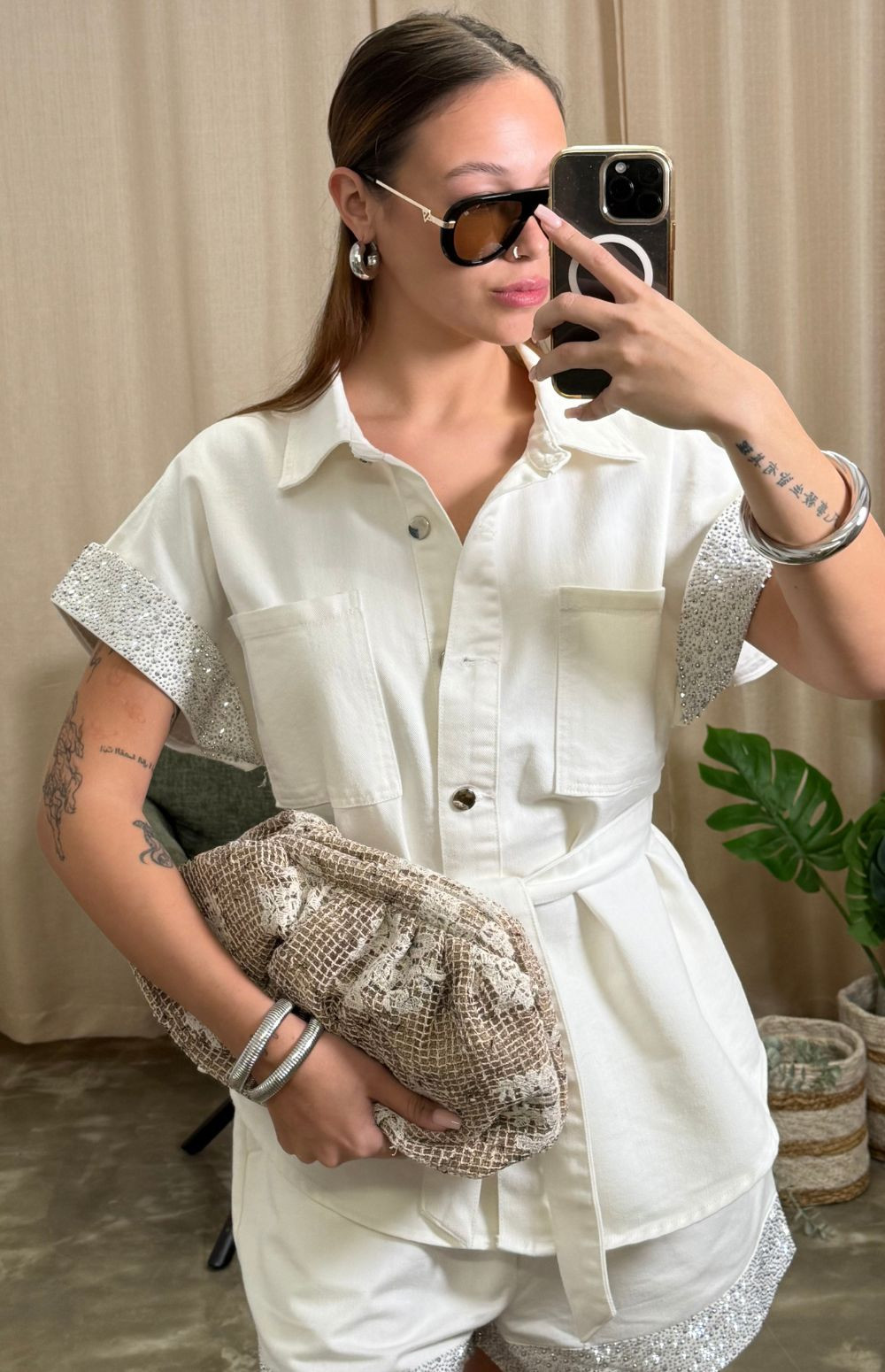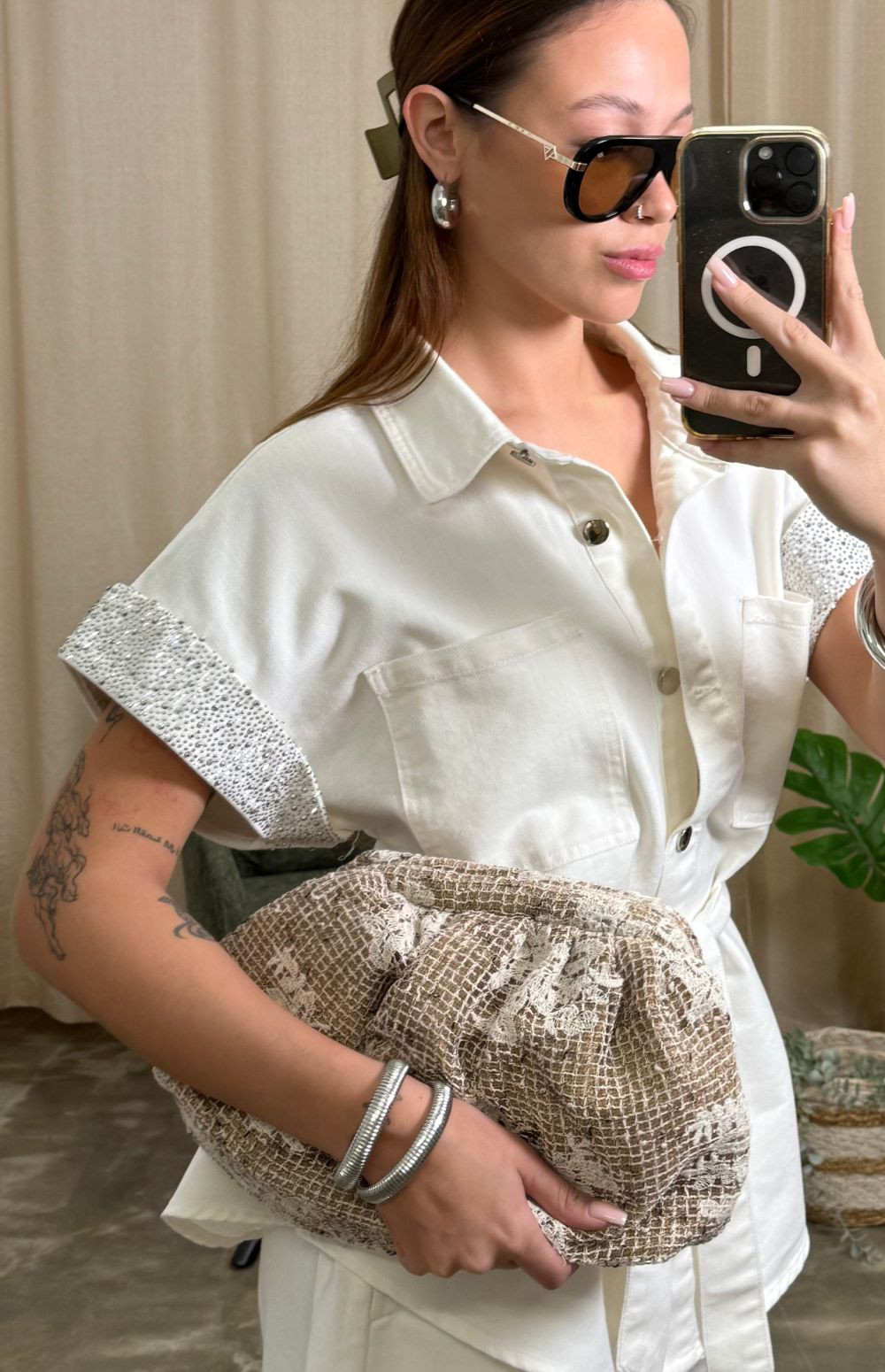 Detachable gold-tone shoulder chain
