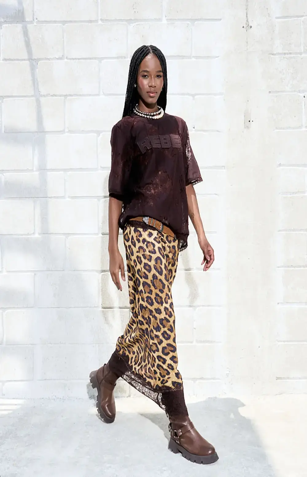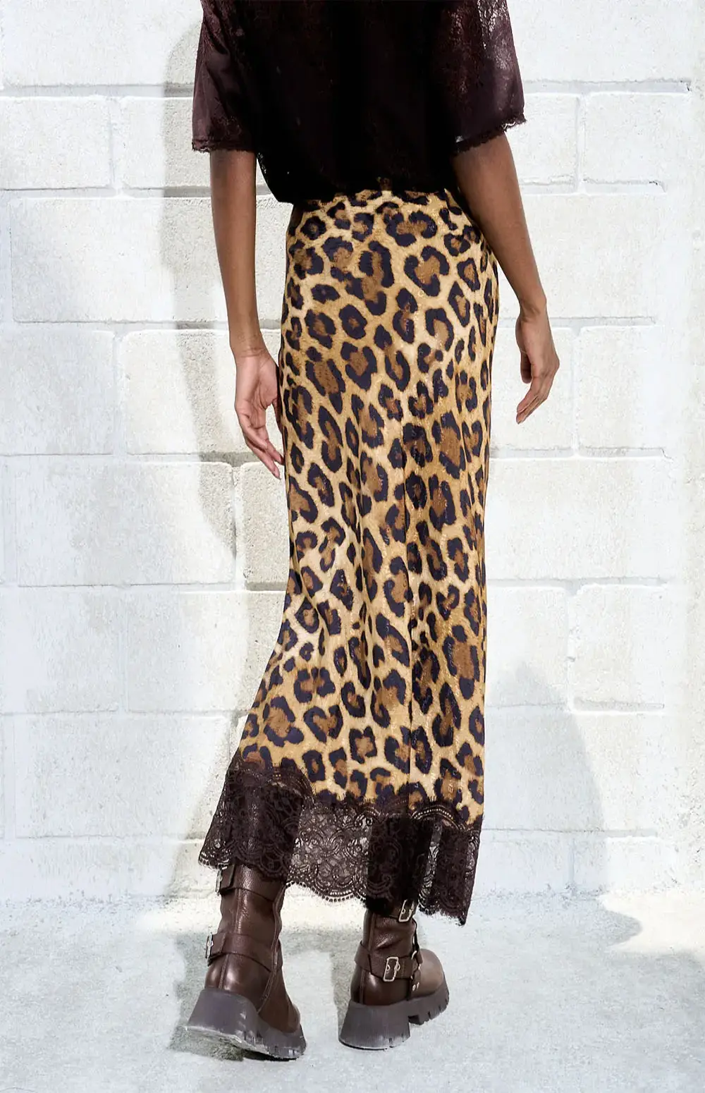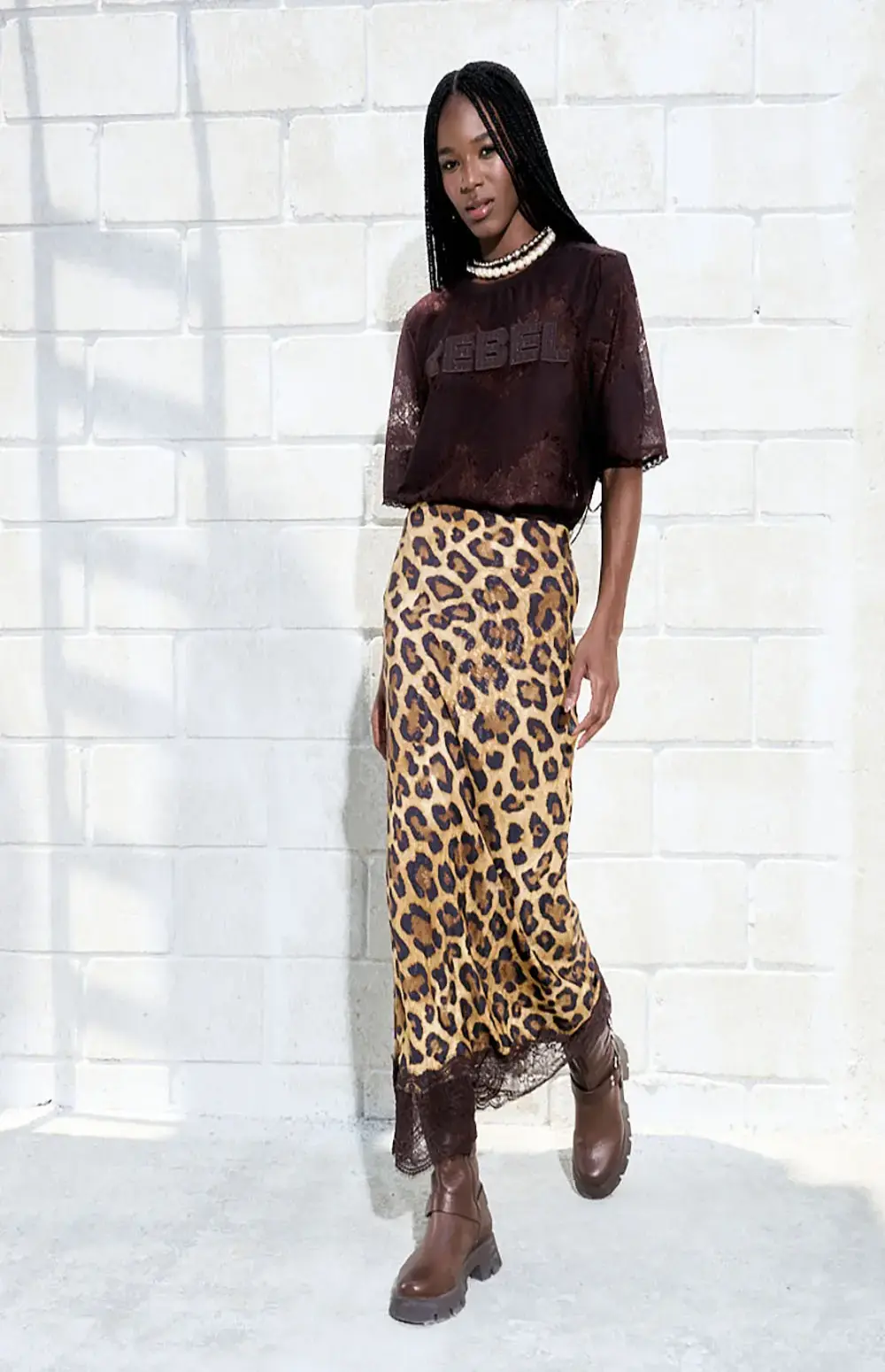 Printed Jacquard Midi Skirt - Skirt - Midi skirt with animal print and lace detail at the hem.