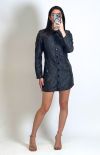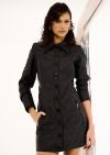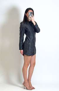 WHAT IT'S LIKE: Piece: Mini-length shirt dress in an intense Black/Graphite tone with a visually distressed (washed) effect. It features a fitted fit that follows the silhouette, long sleeves, and a traditional shirt collar.