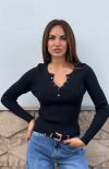 RIBBED LONG SLEEVE TOP WITH GOLD BUTTONS