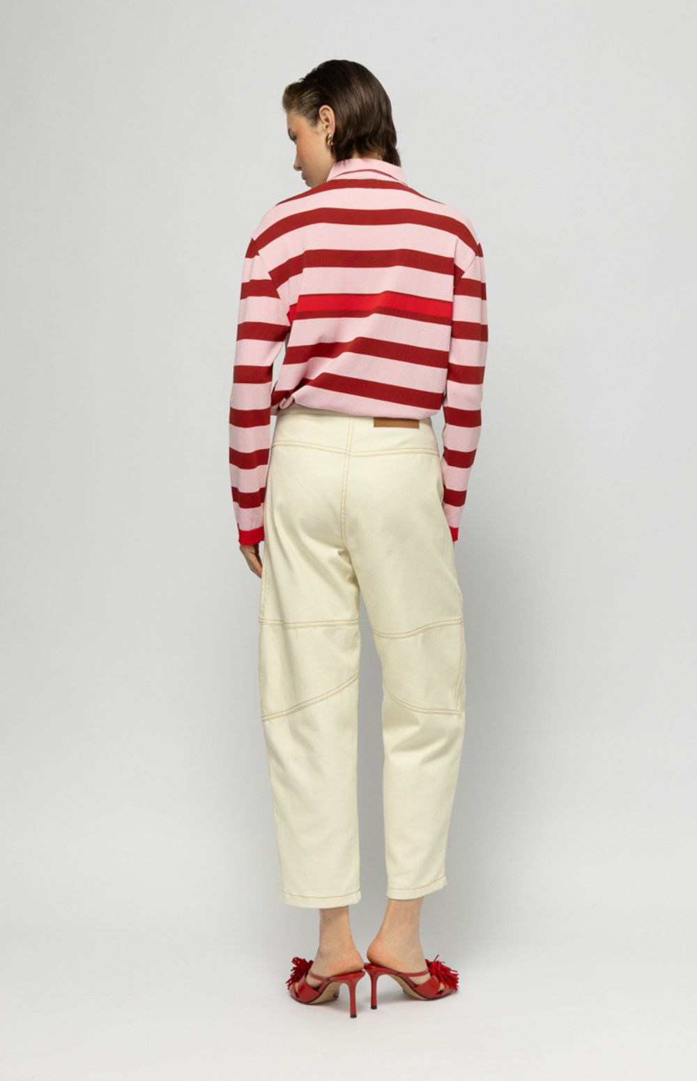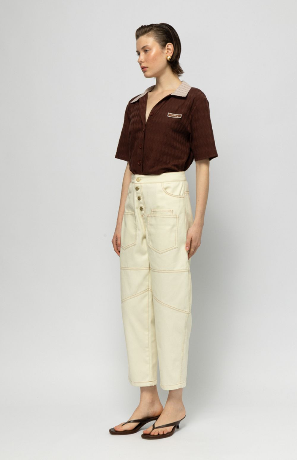 High-waisted jeans with statement buttons and a straight-leg fit — effortless, modern, and easy to style.