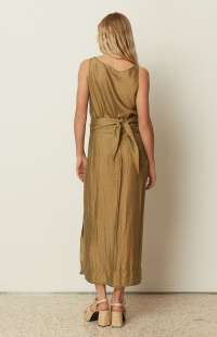 Crafted in a lightweight semi-transparent fabric with an airy drape, it features a statement side knot and an elegant overlay panel that creates movement and a softly asymmetric finish.