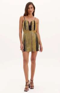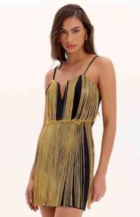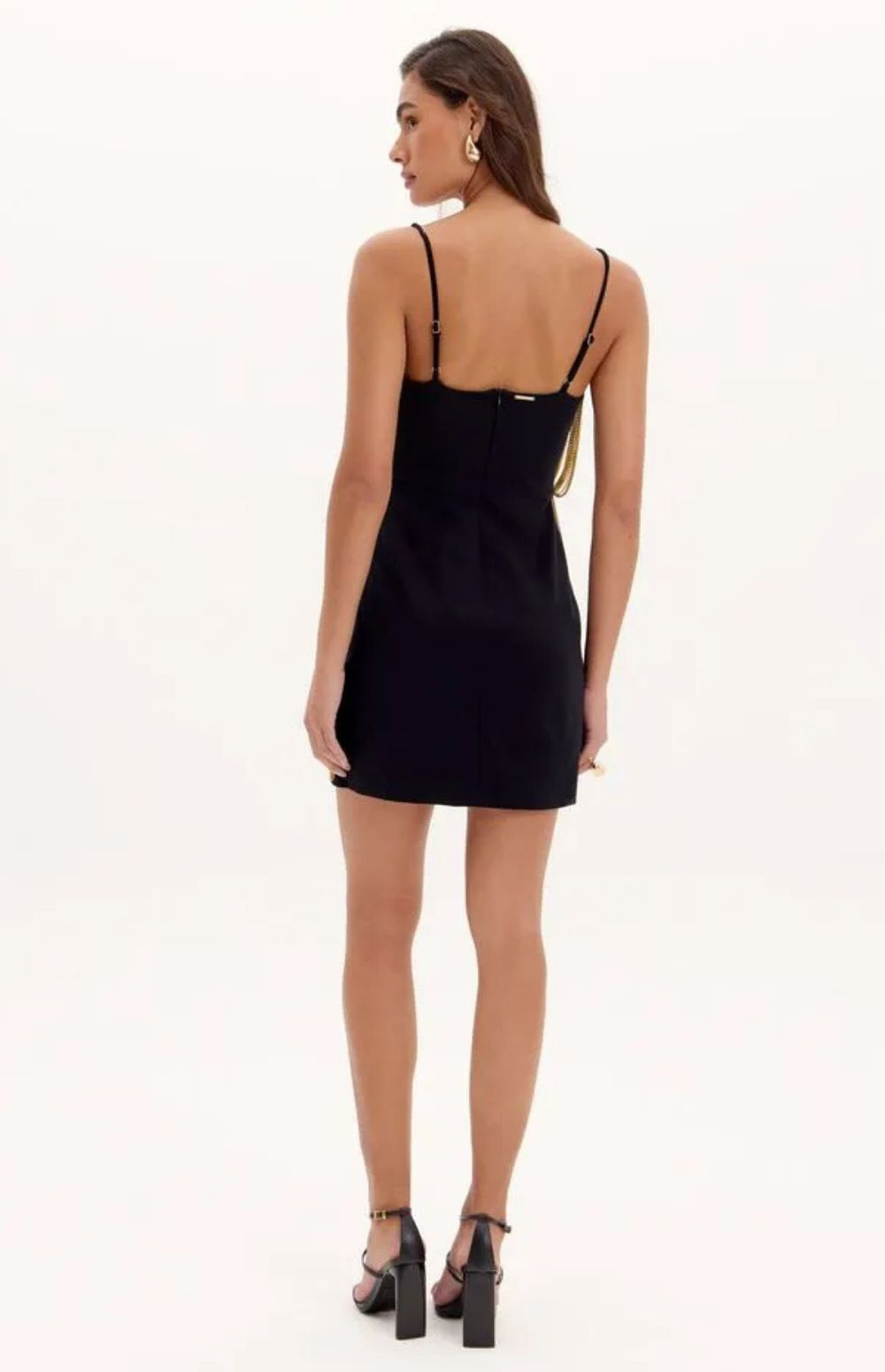 This short women's dress is the ideal choice for powerful looks. It features thin straps, a v-neckline, and a body-hugging fit. Its versatile design is updated with chains that add movement and authenticity to the look. Invest!