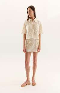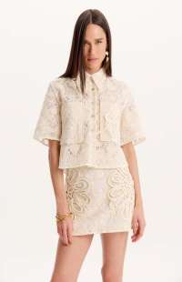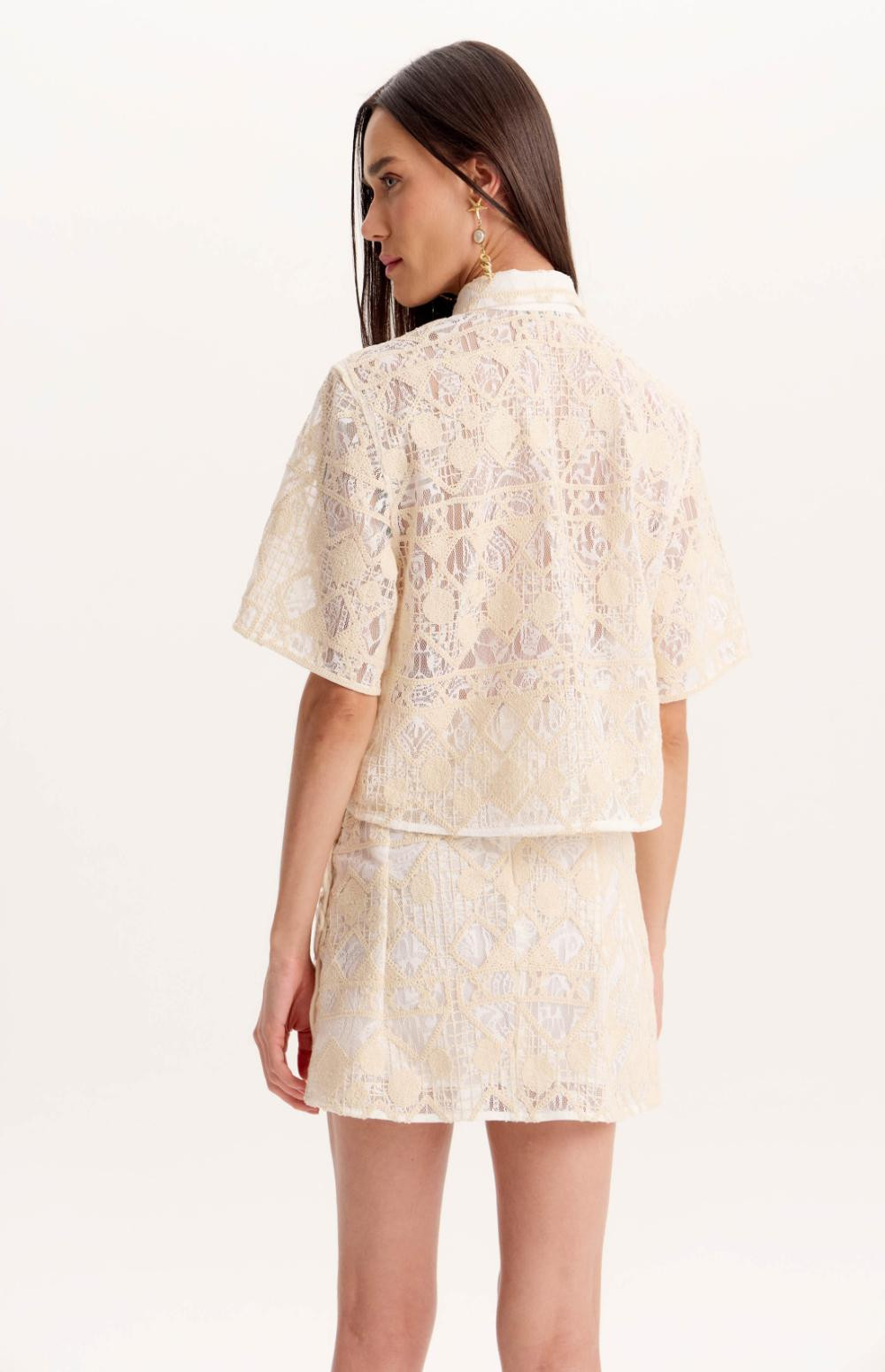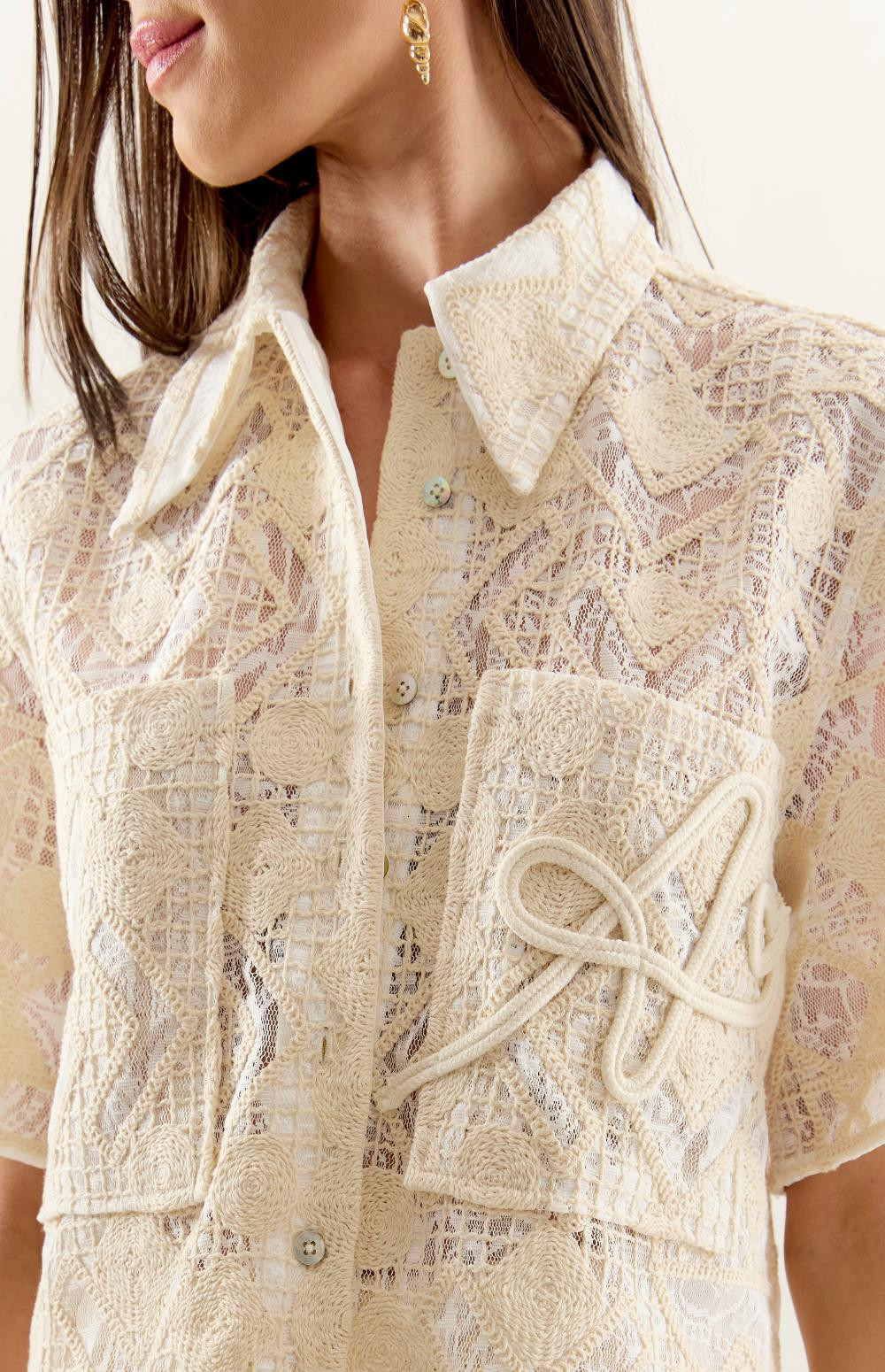 The lace shirt is a true classic with a new twist. With short sleeves, pockets, sophisticated embroidery and button closure, it's the perfect piece to complete your look, from everyday to special occasions.