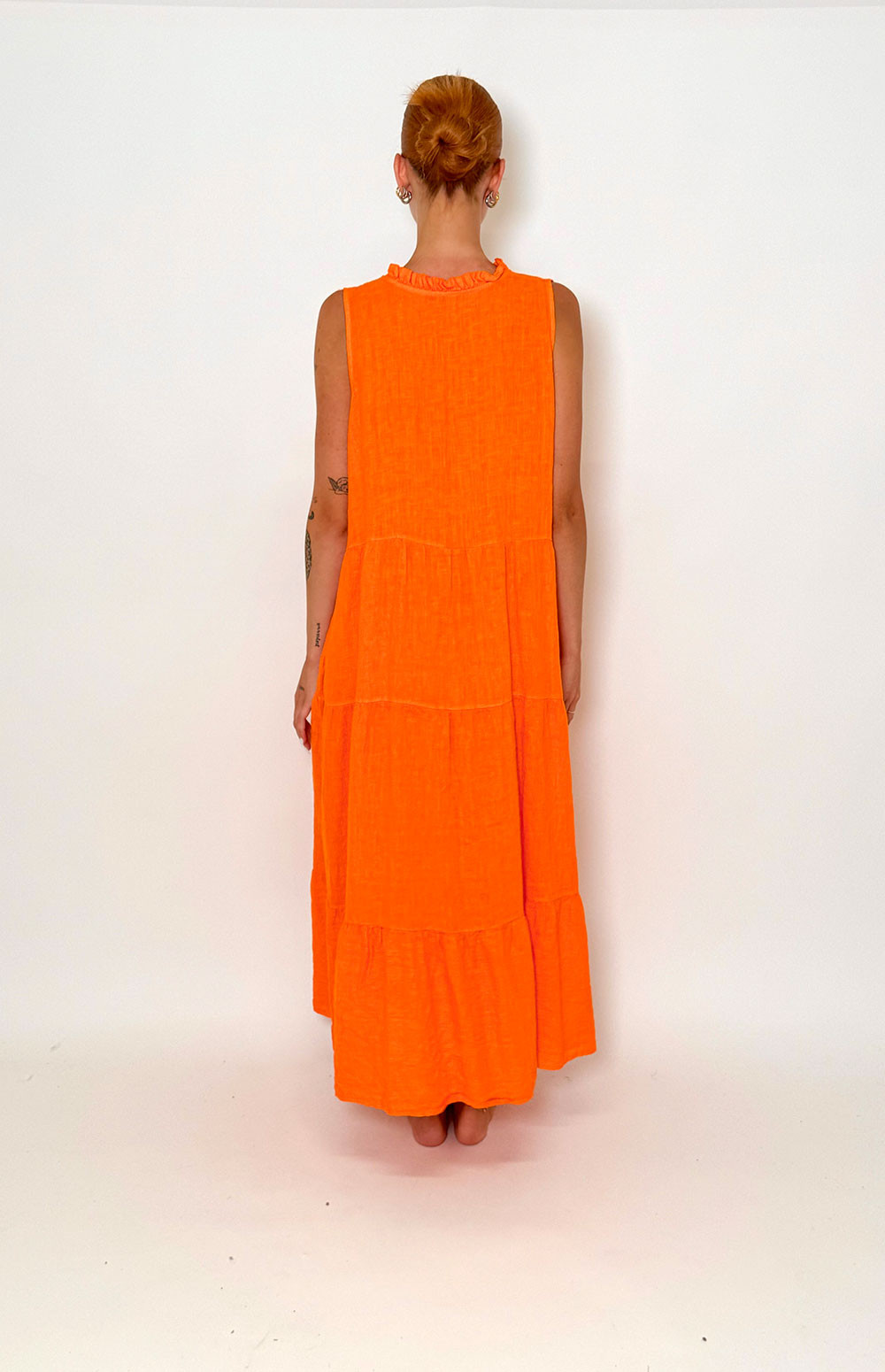 Maxi linen dress with tie front.