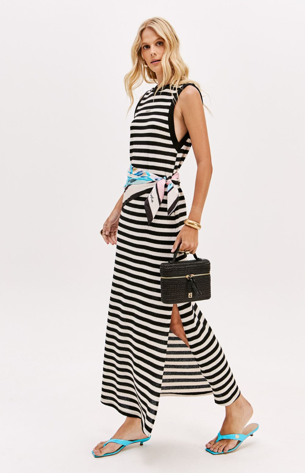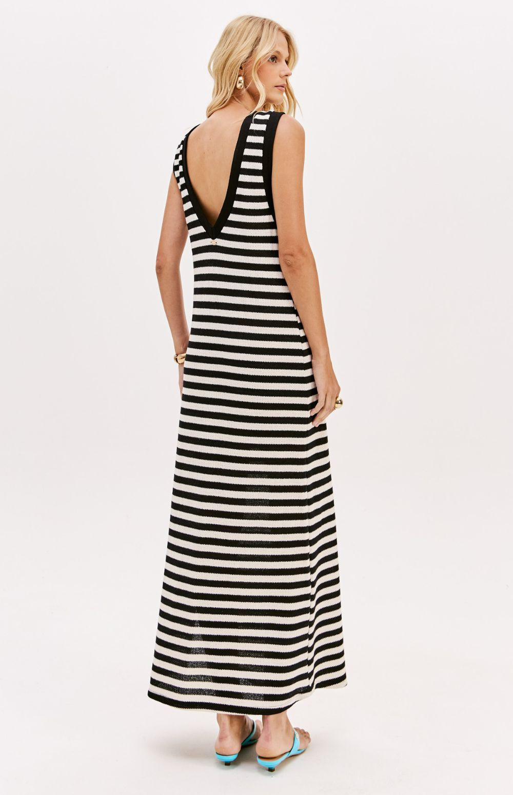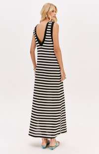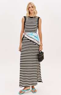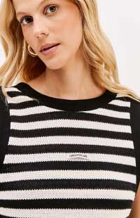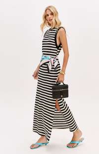 This super midi dress is made from textured knit fabric with a loose fit. It features deeper armholes, a V-neck back, and a side slit. A decorative label adds a subtle touch of style. A key piece for a casual chic look!