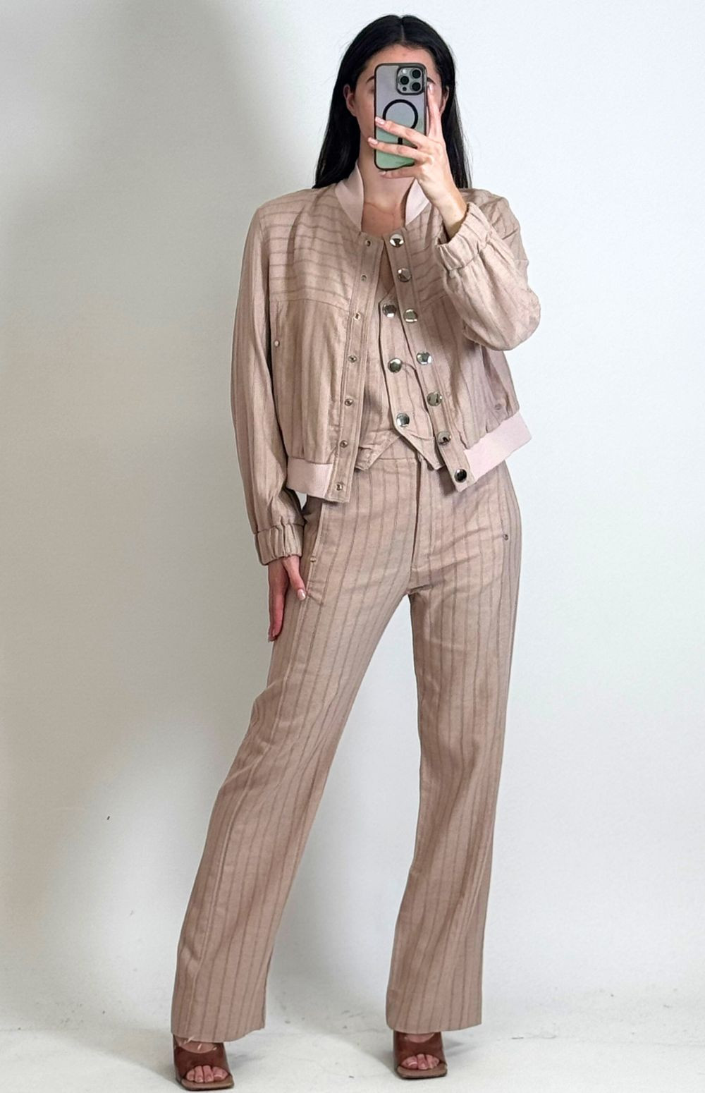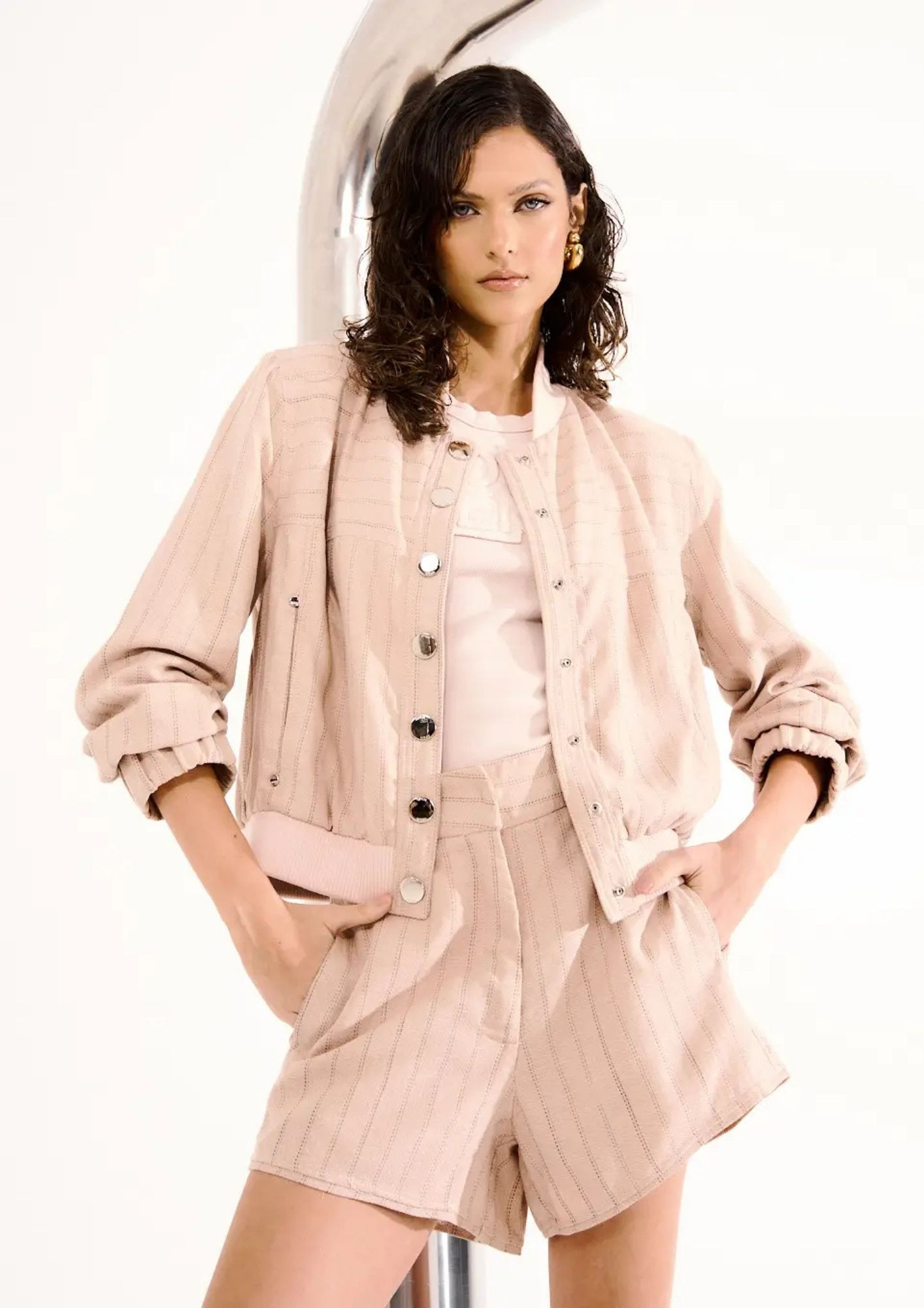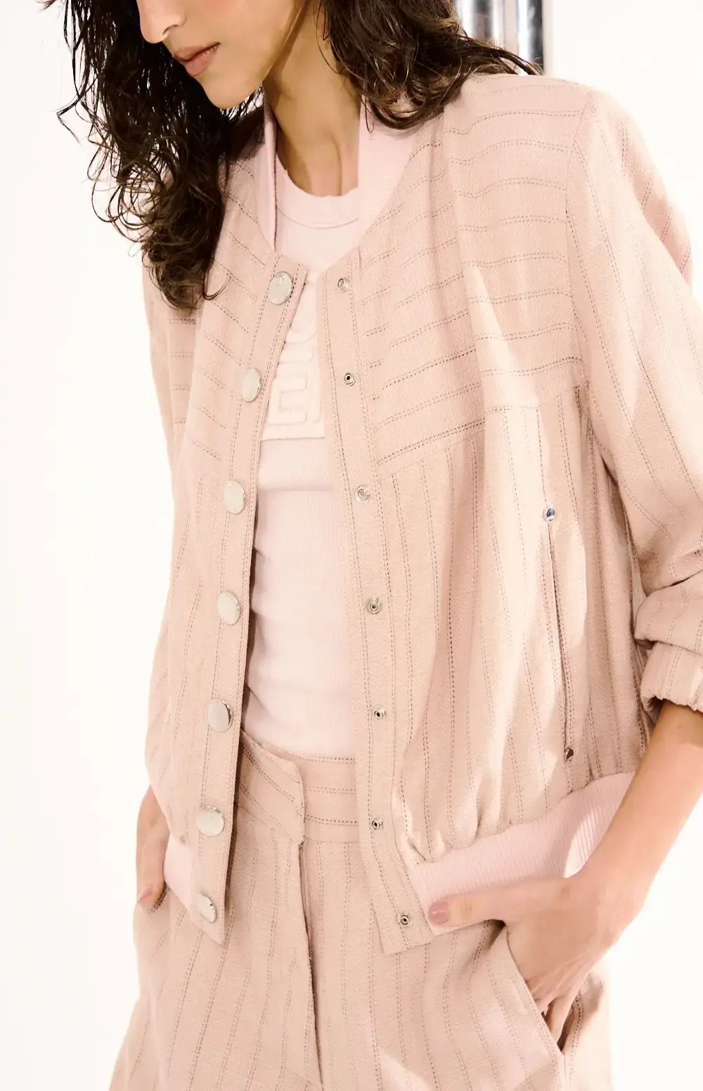 Striped jacket with button closure