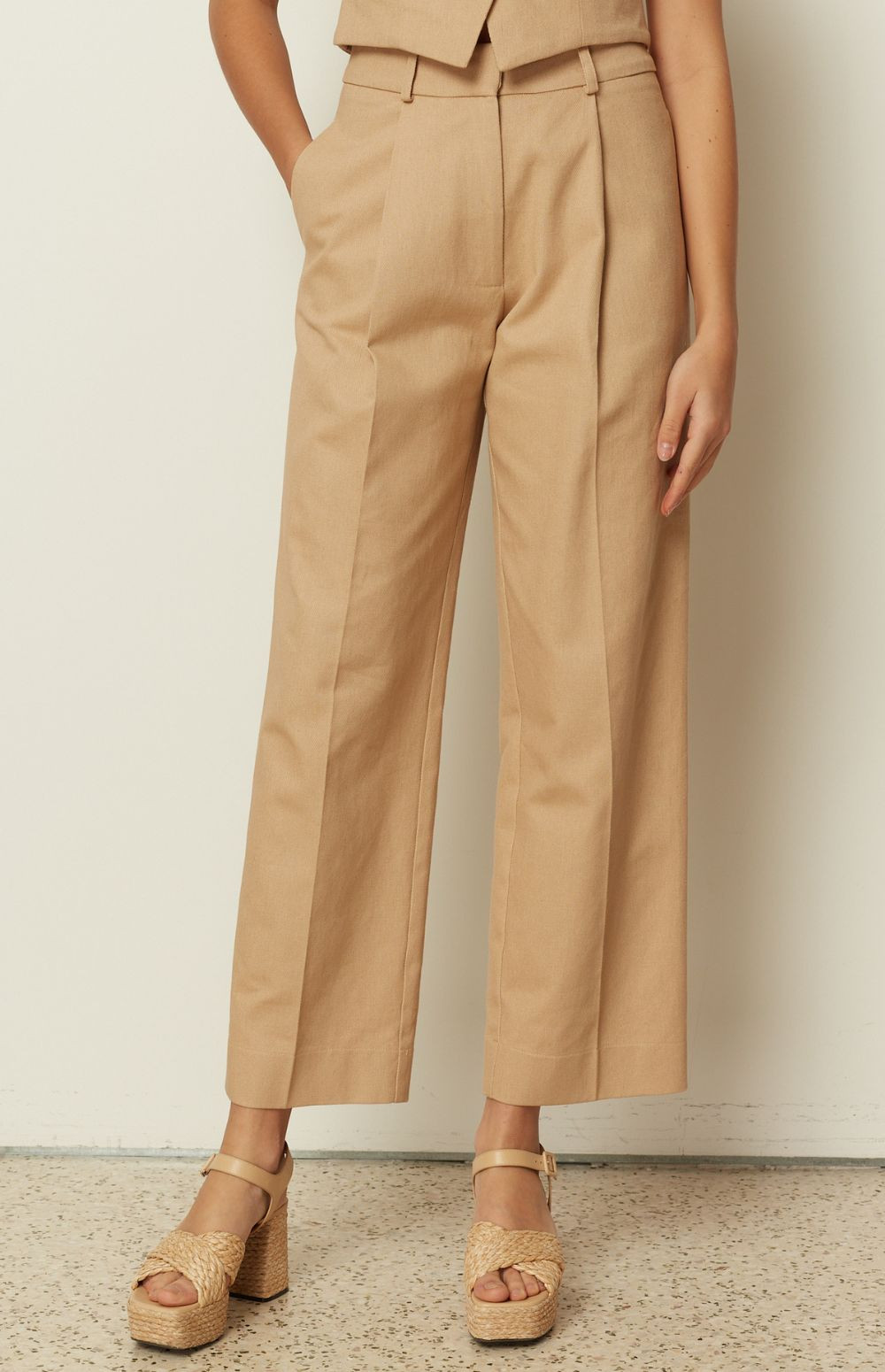A sharp wardrobe essential by ckontova, these tailored trousers are cut in a clean straight-leg silhouette with a flattering high-rise waist. Finished with front pleats and a crisp pressed line, they bring structure and polish while remaining easy to wear from day to night. Style them with a simple tee for modern minimalism, or pair with the matching vest/blazer for a refined suiting look.