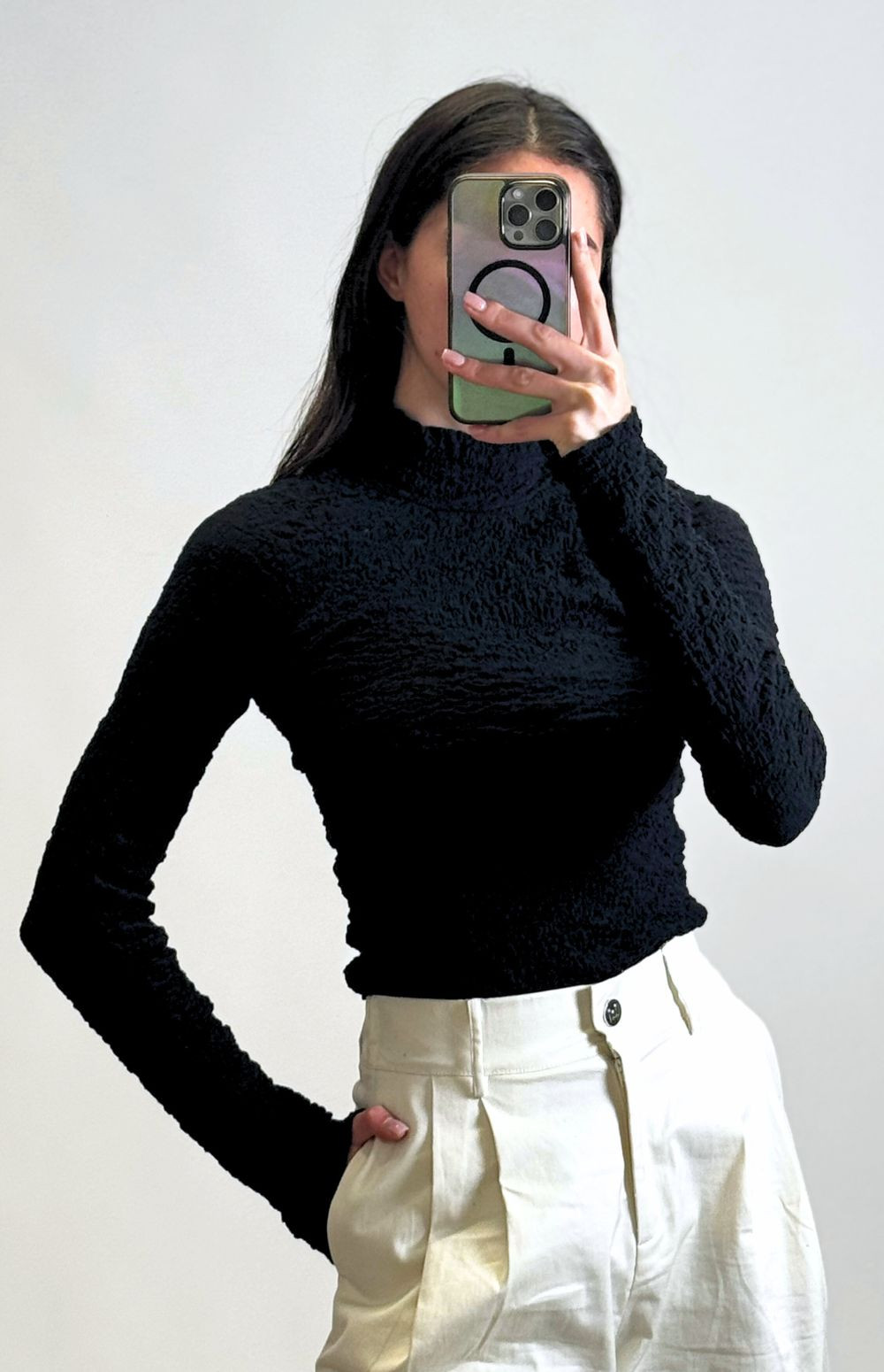 Textured Turtleneck Blouse