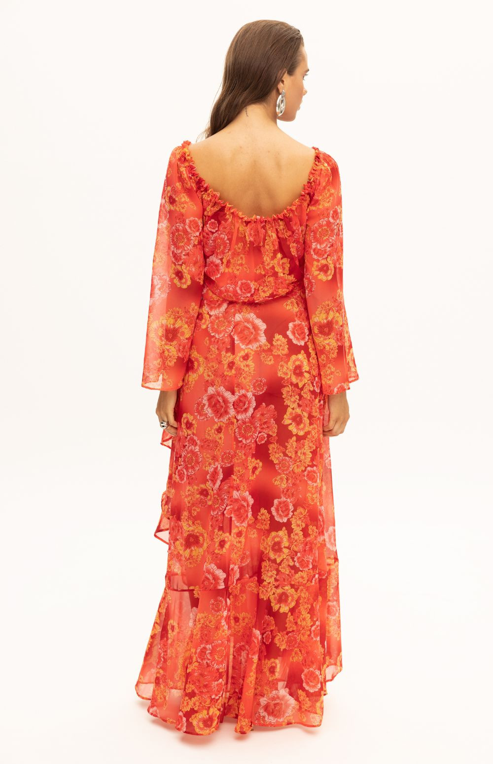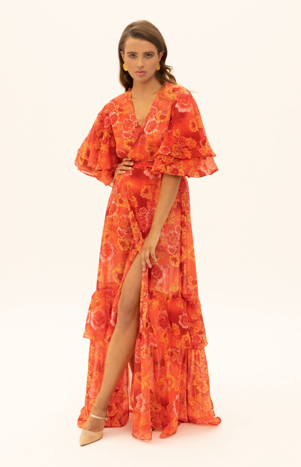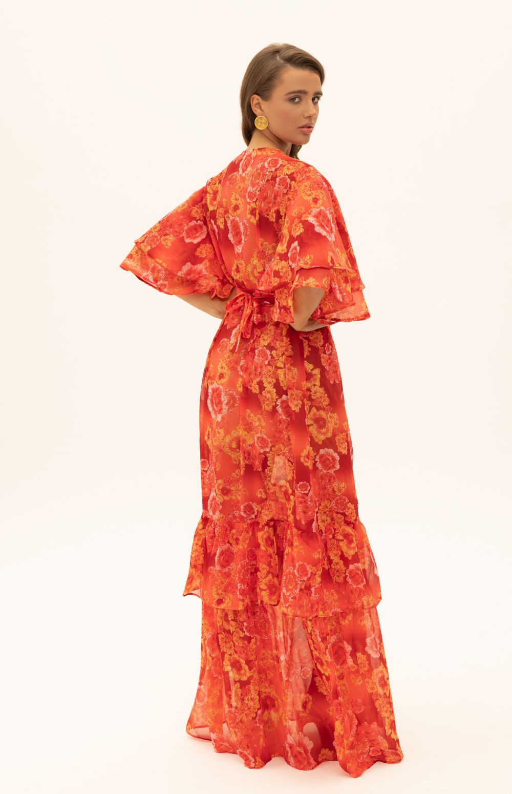 The Ciel concept Red Theros Kimono is made of light fabric with a handpainted print.