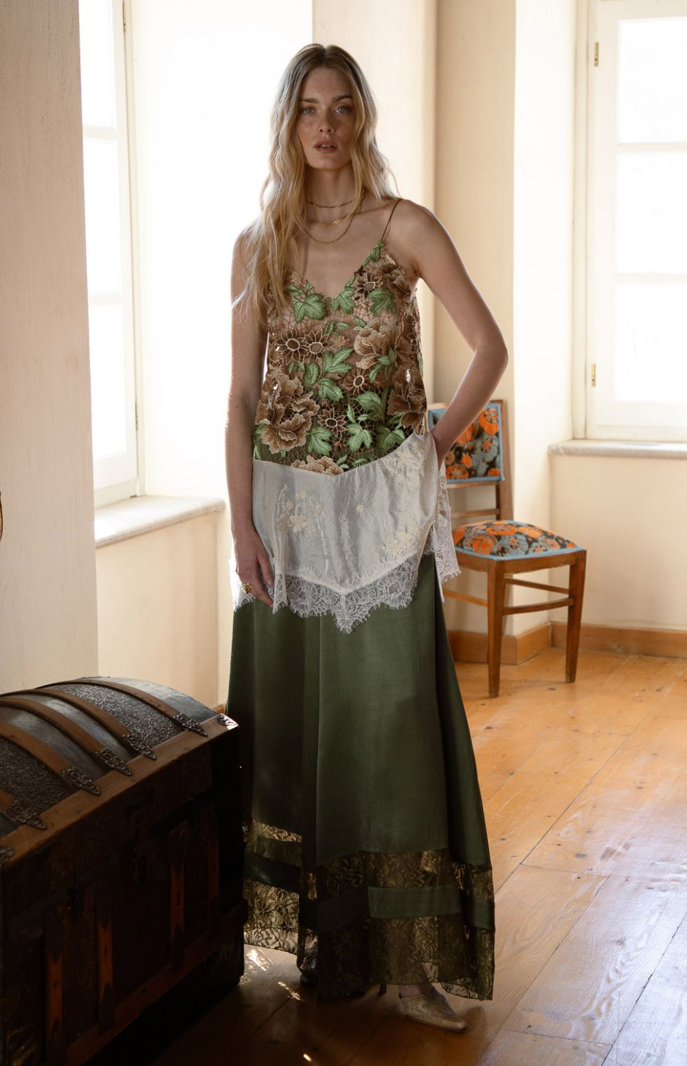 THRESHOLD TOPDRESS | SATIN FLORAL CROCHET