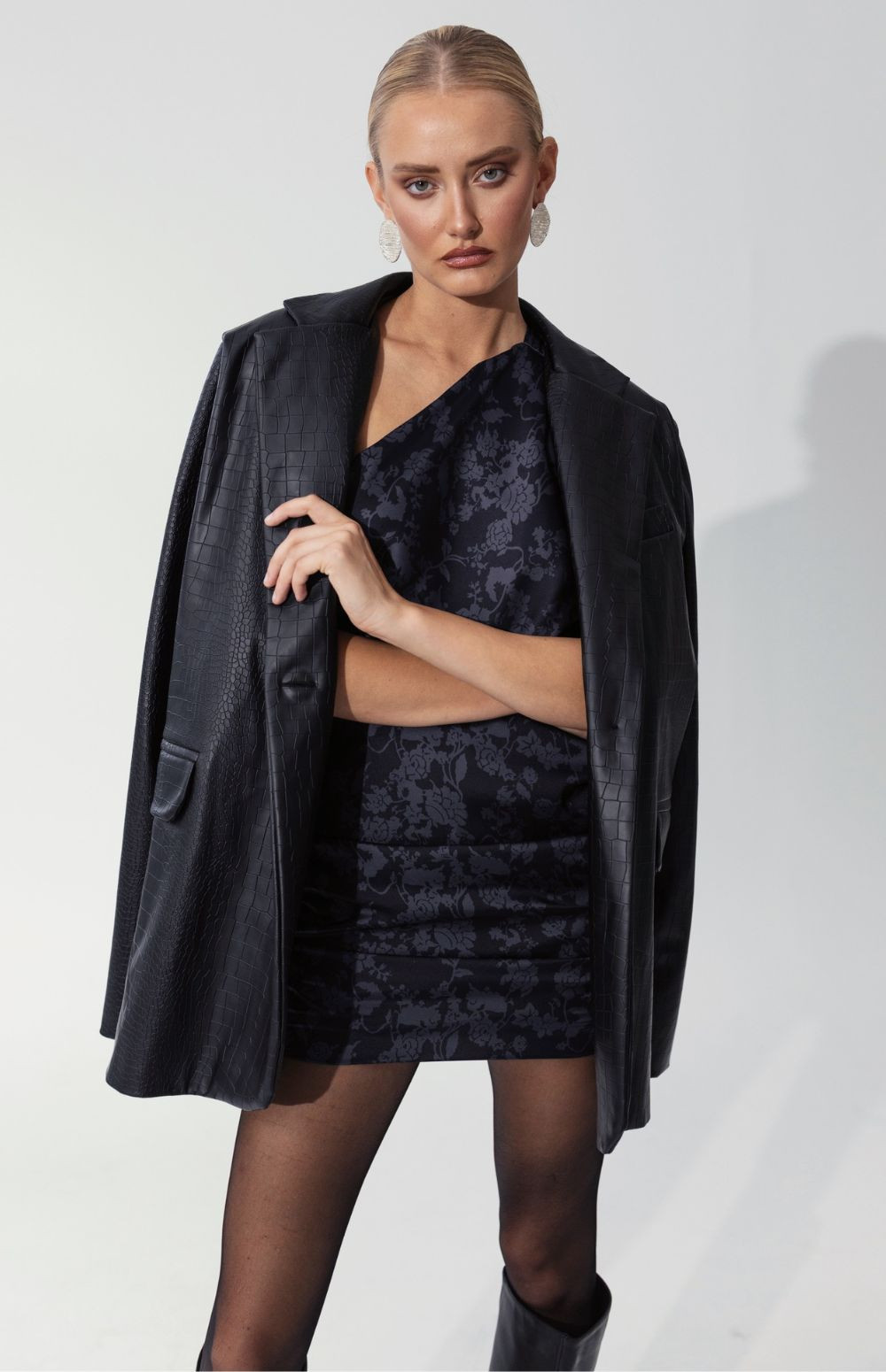 Introducing the Topaz Mini Dress by Ciel Concept, crafted from soft printed fabric with a unique design. This chic mini dress features a flattering cinched waist, stylish ruching, a convenient zipper, andtwo versatile strands that can be tied in various ways for a trendy look.