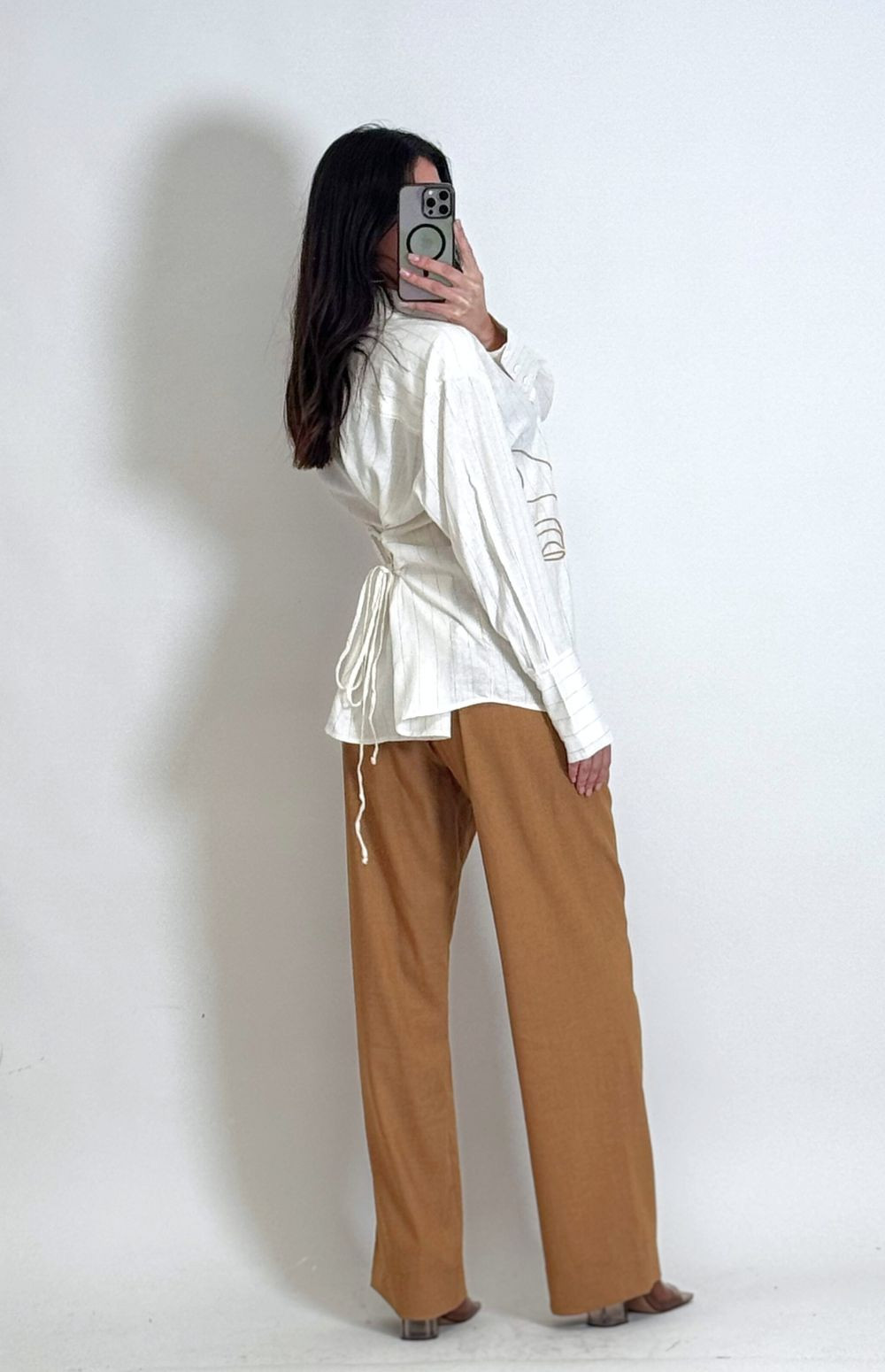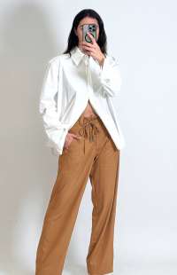 The Wide Leg Pants are the perfect piece for a modern and sophisticated look. Their elegant and timeless design, with a loose fit, high waist, and tie detail, provides comfort and a flawless fit. Made from a high-quality fabric with a blend of polyester, viscose, and elastane, they offer lightness, breathability, and a soft touch.