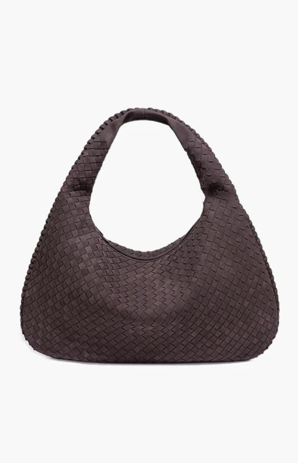 Woven hand bag with zipper closure. Pocket with zipper inside.